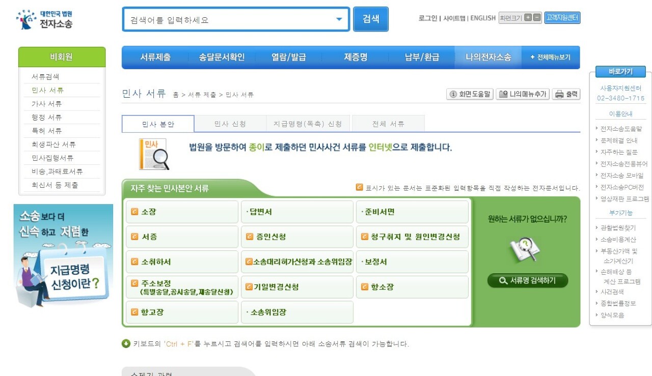 민사신청으로 들어가서 가처분신청서를 치고 거기서 하라는 대로 하면 됩니다.