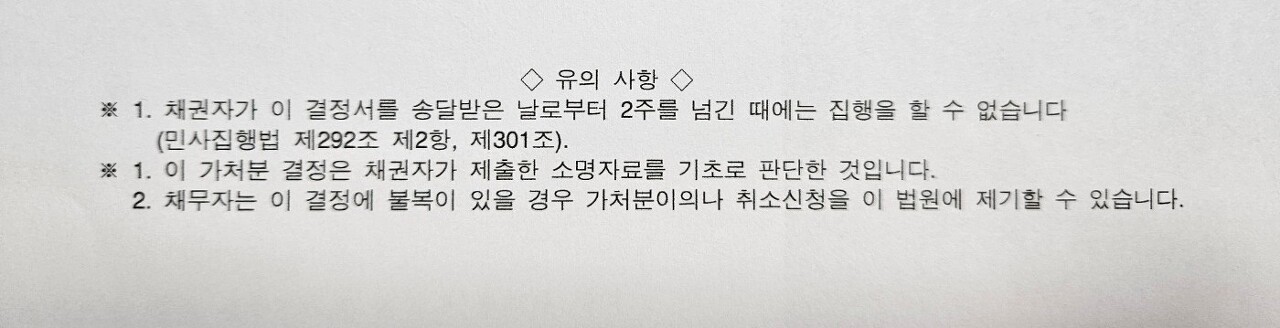 저걸 들고 법원에 가서 집행신청을 하고 돈을 내고 기다려야한답니다.