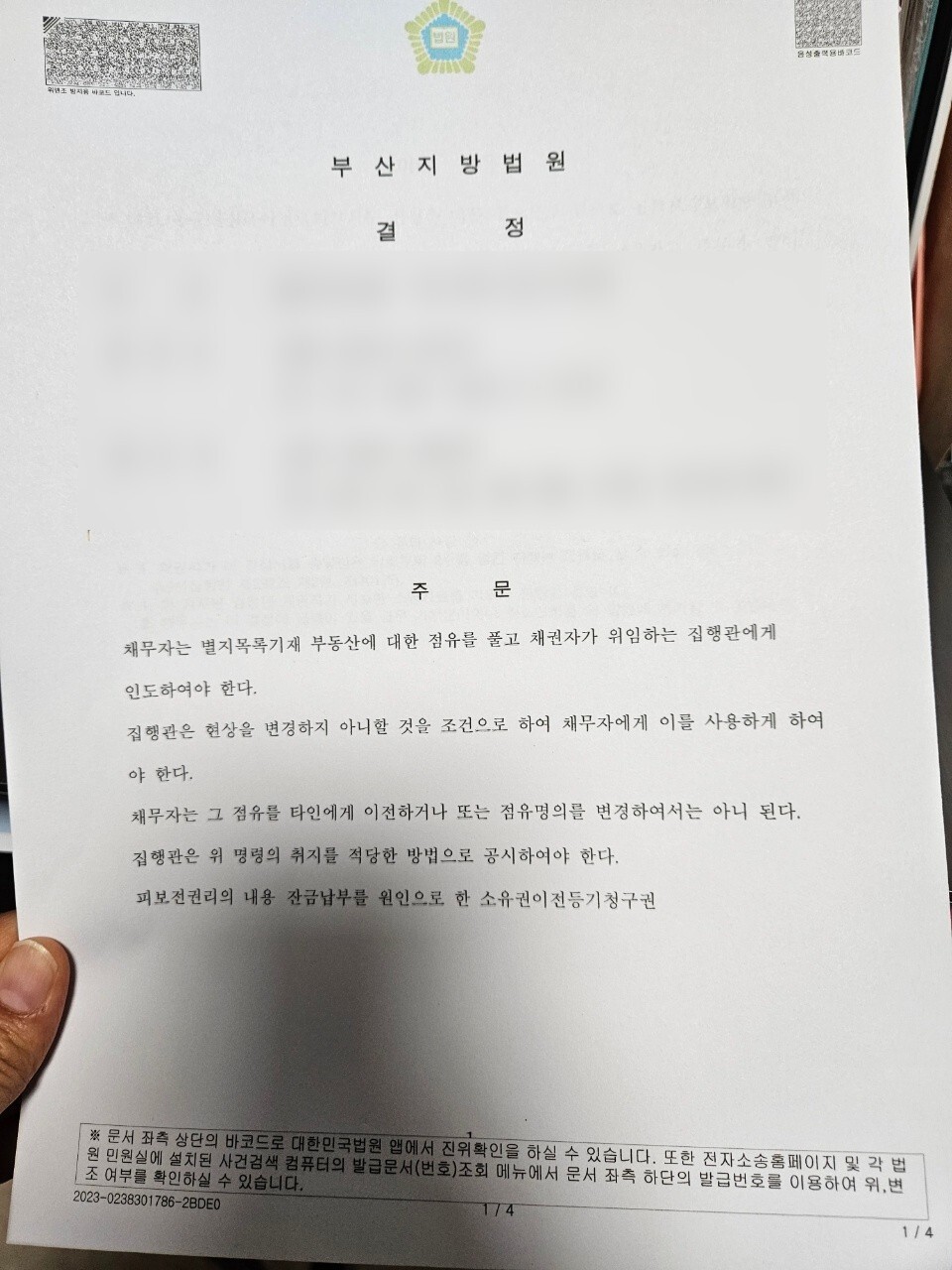 이렇게 다 주고 기다리고 있으면 이제 부동산점유이전금지가처분 결정서가 날아옵니다.